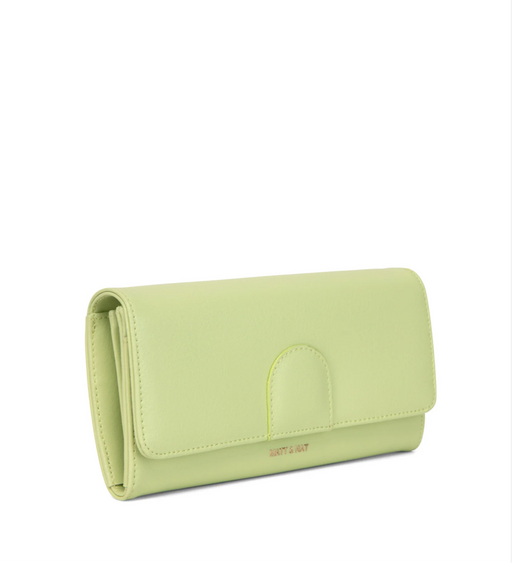 Wallet with a flap closure and a zipper pocket at the back. Interior: 12 card slots, 1 bill pocket, and a large zippered coin pocket at the cen...