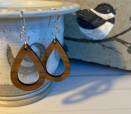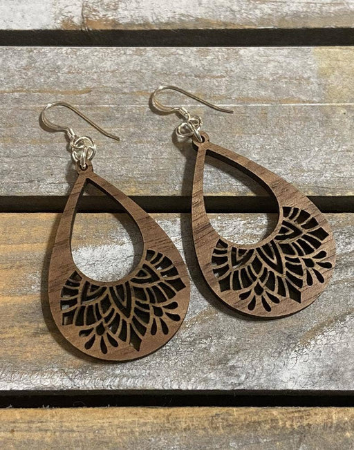 These beautiful wooden earrings were laser cut by me. Wood is walnut. All components are sterling silver.