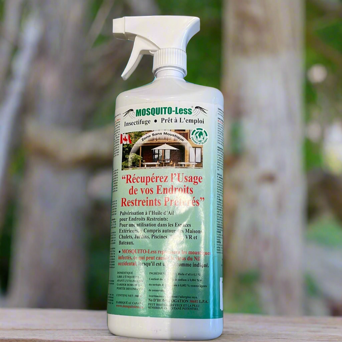 Mosquitoes are 10,000 times more sensitive to garlic than humans. Their life-cycle normally takes place over a number of weeks and within an area 100 sq yds. Once they leave the area they do not prefer returning. Just spray Mosquito-Less on your property, trees, shrubs, gardens, lawn, fences, out buildings and low areas. In minutes after this ready-to-use natural garlic oil product is sprayed, mosquitoes will leave. They are gone for up to 4 weeks. No need to worry about a lingering smell of garlic. The odour will dissipate in 4-5 hours.
